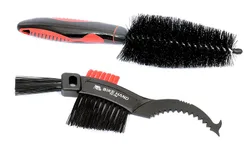 Simson Bike Maintenance Brush Set to thoroughly clean chains, blades, gears and brakes. The set contains two different brushes. Clean the bicycle chain and gear system with the multi brush. Use the serrated plastic edge to remove coarse dirt between the sprockets, whereafter the loosened dirt can be removed with the brush.