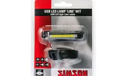 The Simson USB LED light '' line '' White is a USB rechargeable headlight with a plastic housing and rubber handlebar mount. The light is easily recharged true the USB port of the computer. The 20 LEDs provide a light output of 8 LUX. This headlight has an easy to use on/off push button with on, off, dimming and flashing function. Install the light with the rubber mounting strap without the use of tools on the handlebar. The light can then be easily snapped in and out of the retaining ring. Including USB 2.0 charging cable.