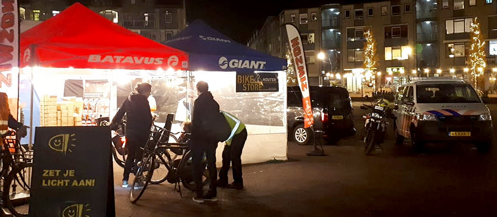 Onlangs werden wij gevraagd om samen met een van onze Simson dealers deel te nemen aan een ludieke actie van de gemeente en politie Houten. Tijdens een grootschalige controle op fietsverlichting werd aan iedere staande gehouden fietser de keuze voorgelegd; te voet verder, of ter plekke voordelig je fietsverlichting laten repareren en/of vervangen voor Simson verlichting door één van de aanwezige fietsspecialisten.
