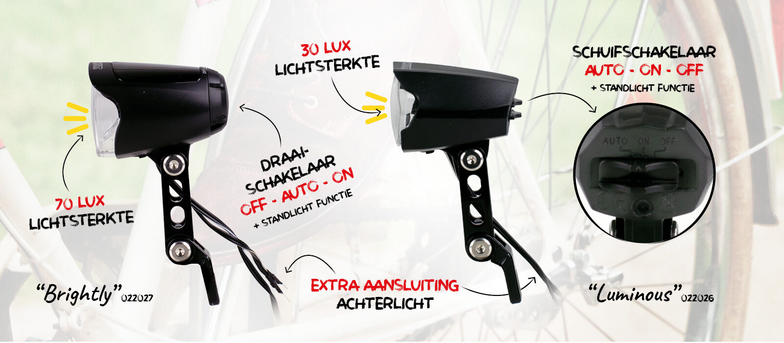 De afgelopen jaren heeft Simson haar assortiment fietsverlichting behoorlijk uitgebreid. Elke lamp onderscheidt zich in unieke eigenschappen. Ook dit jaar heeft Simson weer twee nieuwe lampen toegevoegd aan het assortiment! Zo zijn er nu de Simson Naafdynamo koplampen 'Brightly' en 'Luminous'. Dit zijn twee naafdynamo koplampen die speciaal zijn ontworpen voor stads-, trekking- en hybridefietsen.