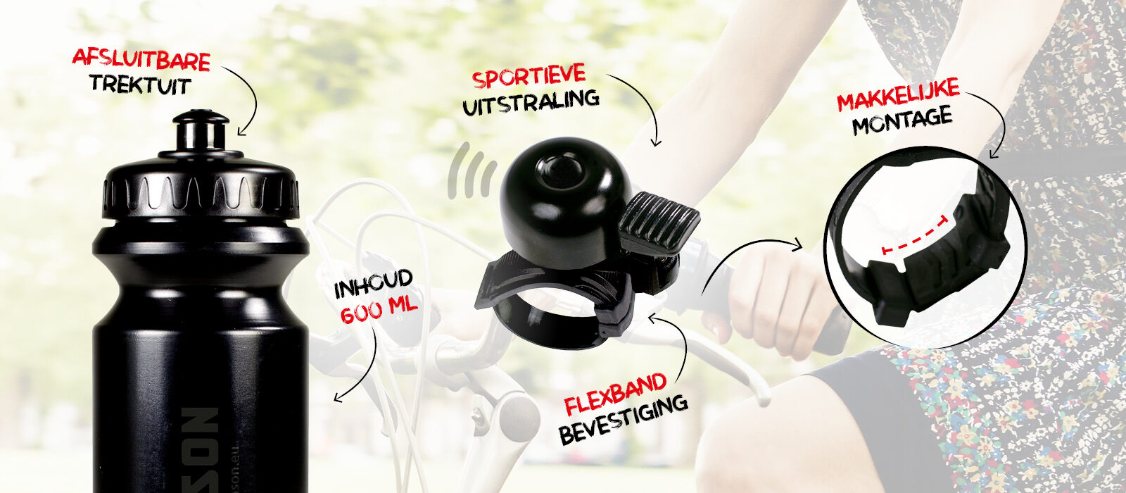 Nieuw in het assortiment van Simson: een sportieve Simson fietsbel met universele flex-band bevestiging en de mat zwarte Simson bidon met een inhoud van 600ml!