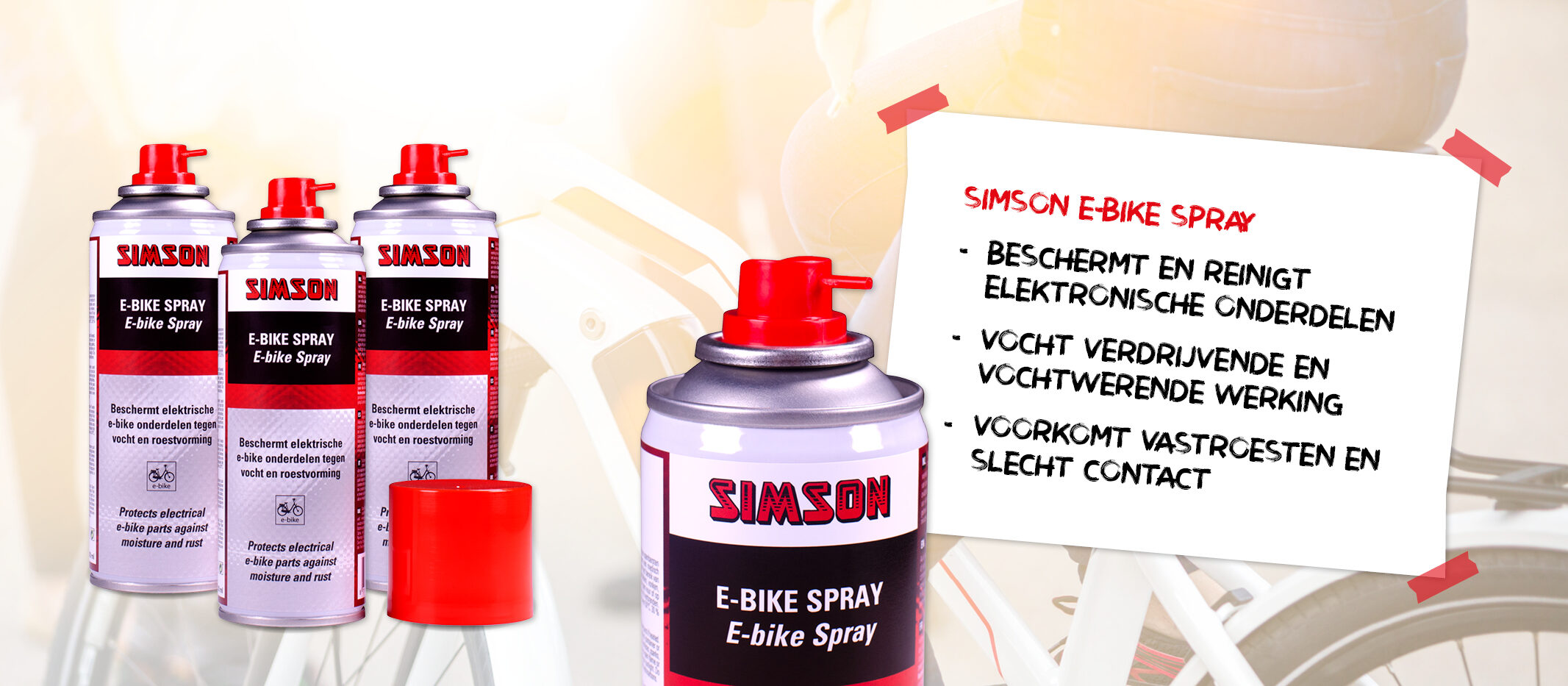 Speciaal voor de E-bike gebruiker heeft Simson een E-bike assortiment ontwikkeld en één van de uit te lichten producten is de nieuwe Simson E-bike spray.
