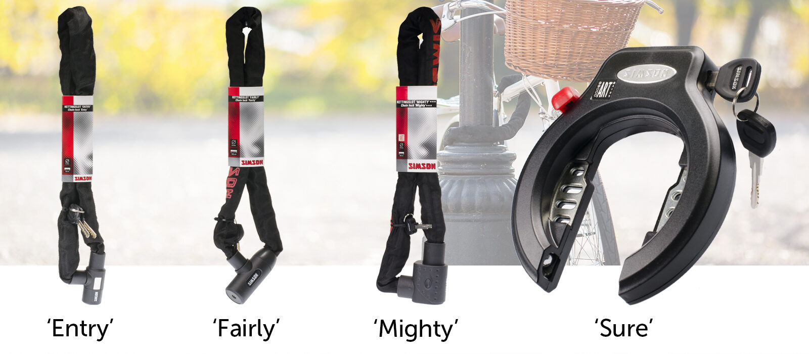 Simson heeft een stevige aanvulling op het huidige sloten assortiment. Van lichtgewicht modellen, die makkelijk mee te nemen zijn, tot de zwaardere sloten die gekwalificeerd zijn voor fietsverzekeringen.