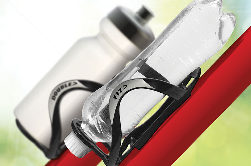Een bidonhouder of een PET-fleshouder? Met de Double Fit fles- en bidonhouder hoef je niet te kiezen. De speciaal ontworpen bidonhouder houdt alle traditionele bidons moeiteloos vast tijdens de fietsrit en de gepatenteerde fleshalsopening maakt de Double Fit ook geschikt voor het veilig en slim vervoeren van PET flessen.