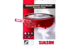 Simson Batterij Bagagedrager Achterlicht Taillight met tunnel LED verlichting voor extra goed zicht en een aan- en uitschakelaar aan onderzijde. Het achterlicht is spat en regenwater dicht en eenvoudig te bevestigen aan de bagagedrager met behulp van een ringsteeksleutel. Inclusief batterijen: 2 x AA.