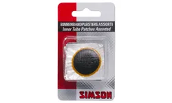 Simson Binnenbandpleisters Assortiment. Met deze vulkanisatie pleisters is een lekke binnenband zo geplakt. Geschikt voor alle binnenbanden. Ook geschikt ter aanvulling van de gebruikte plakkers uit de Simson Reparatiedoos.