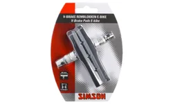 De Simson E-bike V-Brake Remblokken zijn speciaal ontworpen om de zwaarderebelasting van hoge snelheid en een hoog rijwielgewicht van een E-bike aan tekunnen. Deze extra brede blokken (80 mm) hebben een groot remoppervlak om sneller te kunnen remmen. Het blok is voorzien van een speciaal samengesteld harde rubbersoort dat weerstand biedt aan de hoge slijtagelasten. Het SIMSON e-bike remblok heeft een asymmetrische vorm voor een betere drukverdeling en een betere positionering van het remblok op de velg. Draai met een inbussleutel de versleten remblok los van de rem. Monteer de nieuwe remblok met de inbussleutel in de juiste rijrichting, aan beide kanten even ver van de velg. De Simson E-bike Remblokken worden geleverd per 2 stuks.