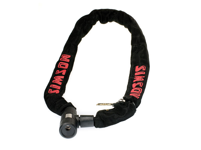 Het Simson Kettingslot Entry is een zeer licht en compact zwart kettingslot met een gewicht van nog geen 600 gram en een textielhoes om beschadigingen aan het frame te voorkomen. Met een dikte van 6mm en een lengte van 90 cm is het kettingslot compact en eenvoudig mee te nemen. Het geïntegreerde slot zorgt voor optimaal gebruiksgemak om de fiets veilig op slot te kunnen zetten. Het slot wordt geleverd met twee sleutels.