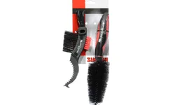 Simson Onderhoudsborstel set om grondig kettingen, kettingbladen, derailleurs en remmen schoon te maken. De set bestaat uit twee verschillende borstels. Reinig met de multiborstel eenvoudig de fietsketting en het versnellingssysteem. Haal met de gekartelde kunststof kant het grove vuil tussen de tandwielen, waarna met de borstel het losgemaakte vuil kan worden verwijderd.