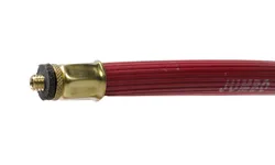 Deze Simson pompslang is een kwalitatief hoogwaardige traditionele pompslang, geschikt voor de Jumbo Pomp. De slang is voorzien van een knijpklem en is geschikt voor de standaard Hollandse- en Dunlop ventielen. De slang heeft een lengte van 60 centimeter en is eenvoudig op de Jumbo pomp te bevestigen door middel van een schroefverbinding.